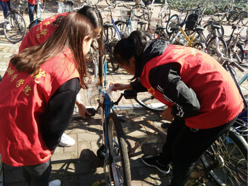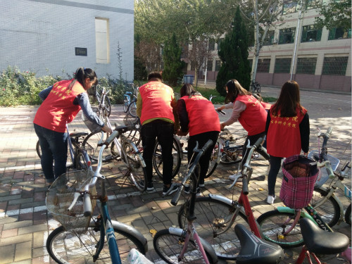 随着生活节奏的加快,大多数同学们选择骑自行车出行。为了使同学们骑放车子更加方便,同时使校园车辆摆放更加整齐美观,德州学院欧美亚州国产日韩mv天天于10月28日在求实楼和求索楼门前开展了“爱心维车”活动。