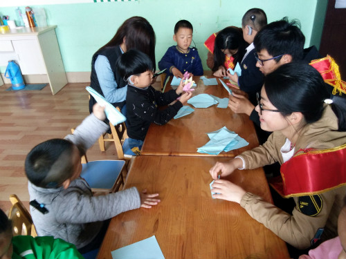 志愿者前往培训中心后,很快地融入到孩子们当中。接着,志愿者们为孩子们带来了自己精心准备的歌曲舞蹈表演,孩子们也将最真诚的掌声送给了志愿者们。随后,孩子们在志愿者们的帮助下学会了各种各样的折纸方法,孩子们露出了灿烂的笑容,整个活动场面温馨感人。