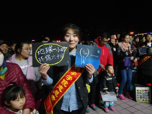 晚上七点半,活动正式开始。我们通过展板向人们宣传本次的活动,志愿者给群众发送宣传卡片并讲述地球一小时活动的意义。同时,活动期间志愿者进行了乐器表演并和现场小朋友进行了互动,现场的气氛越来越活跃。