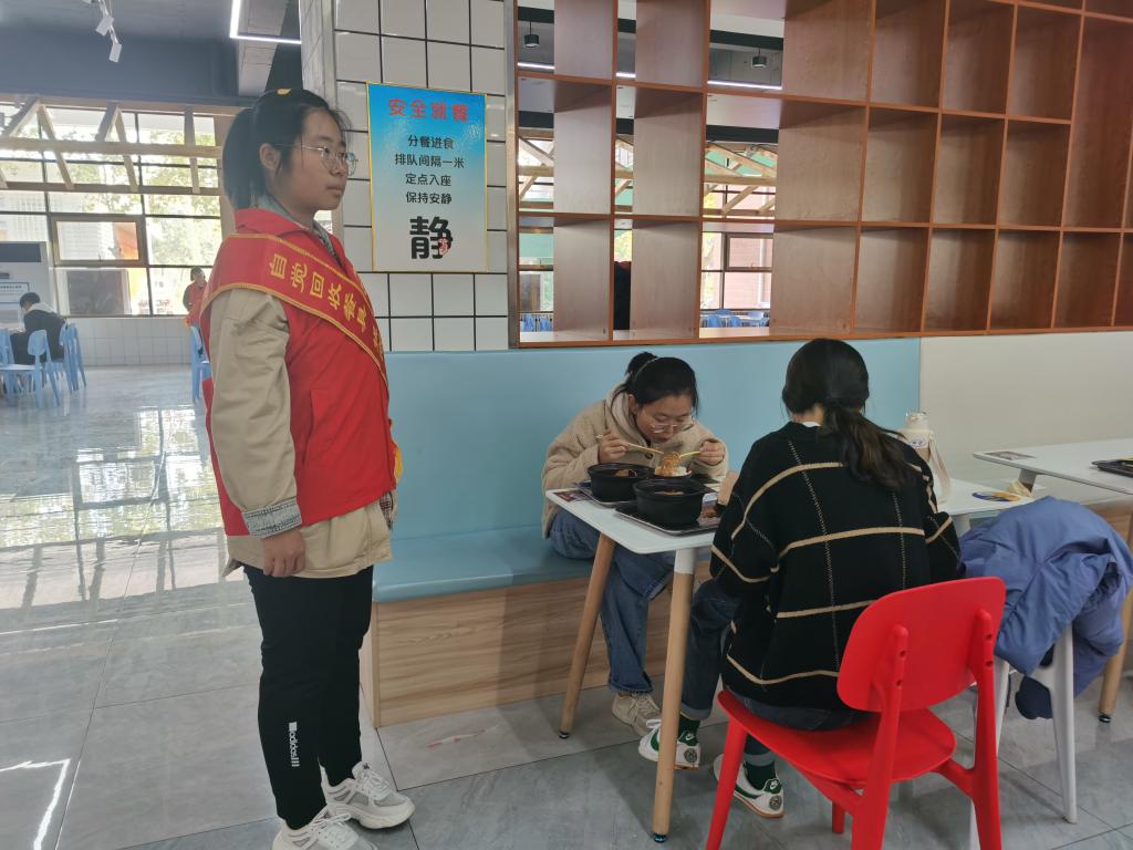 10月20日,为了帮助同学们养成就餐时自觉排队,就餐后自觉回收餐具的良好习惯,维持好餐厅秩序,我院举办“文明就餐我先行,志愿服务助同学”餐厅值班活动。