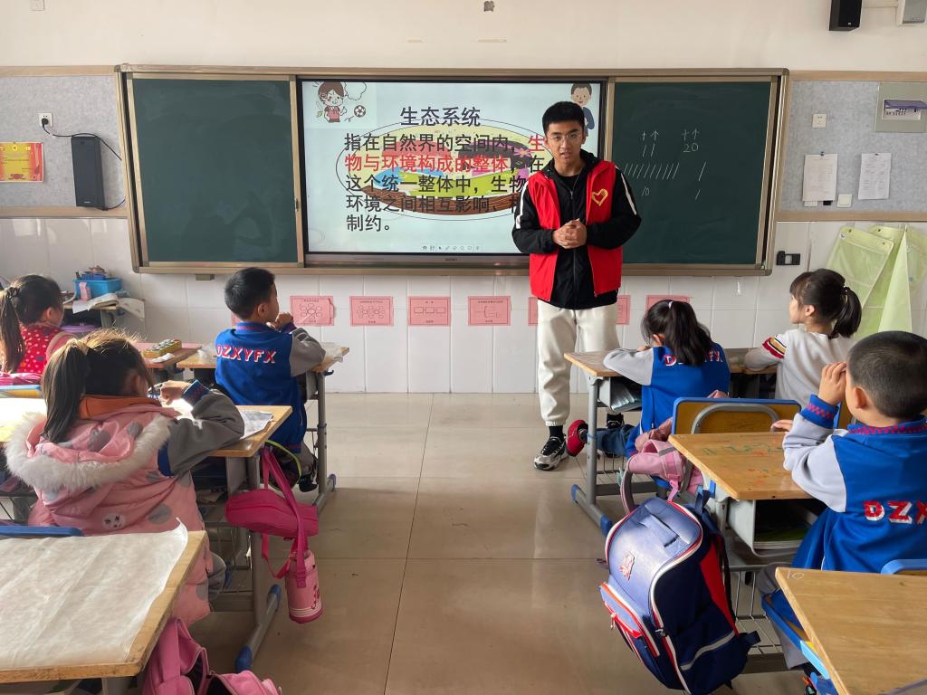 11月16日,为了提高同学们保护生态环境的意识,优化生态环境、建设生态文明。我院于德州学院附属小学北校区举办“呵护生态系统,重温百年辉煌”爱心课堂活动。此次活动邀请了2020级生物科学专业的刘兴良同学作为志愿者老师前往德州学院附属小学一年级六班授课。
