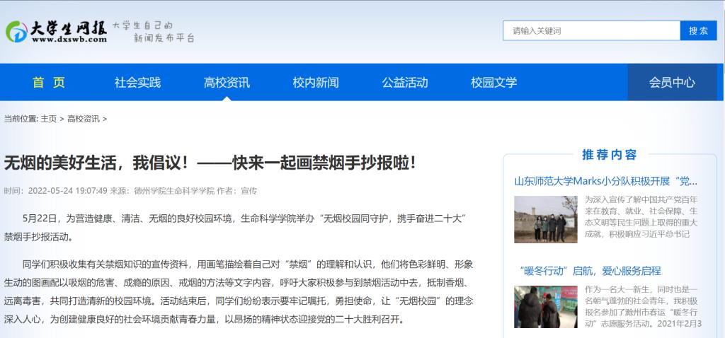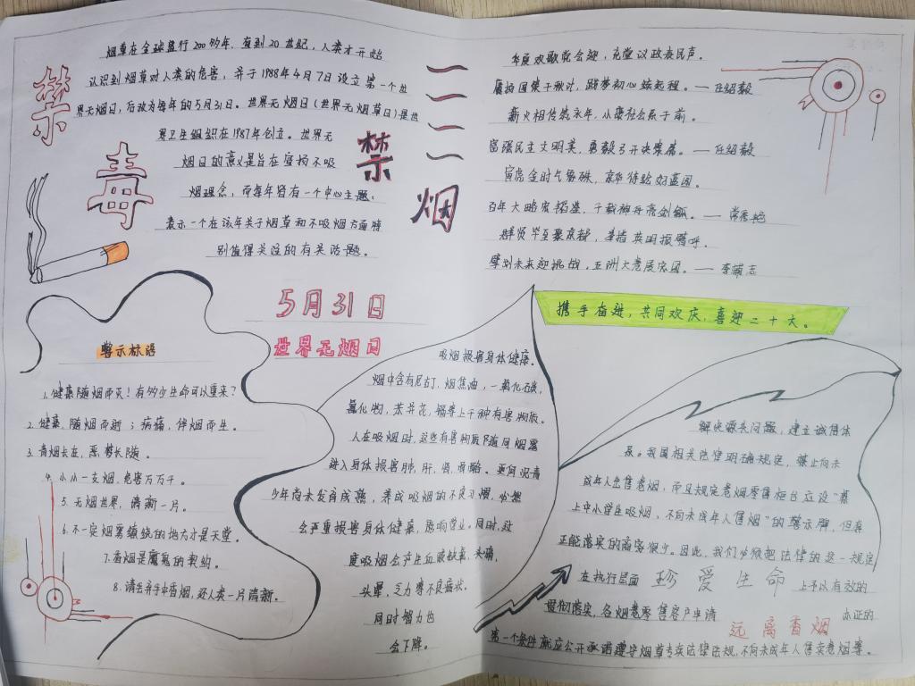 5月22日,为营造健康、清洁、无烟的良好校园环境,欧美亚州国产日韩mv天天举办“无烟校园同守护,携手奋进二十大”禁烟手抄报活动。