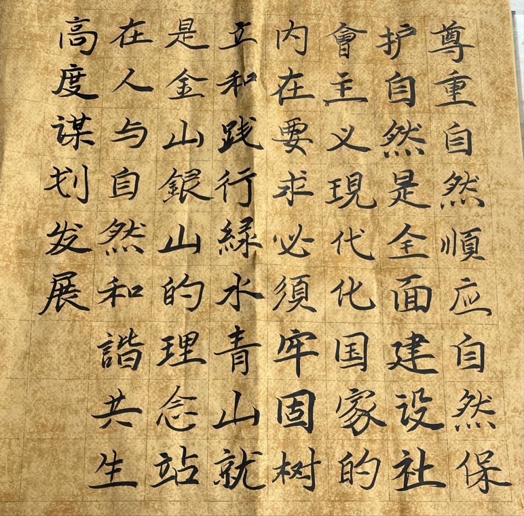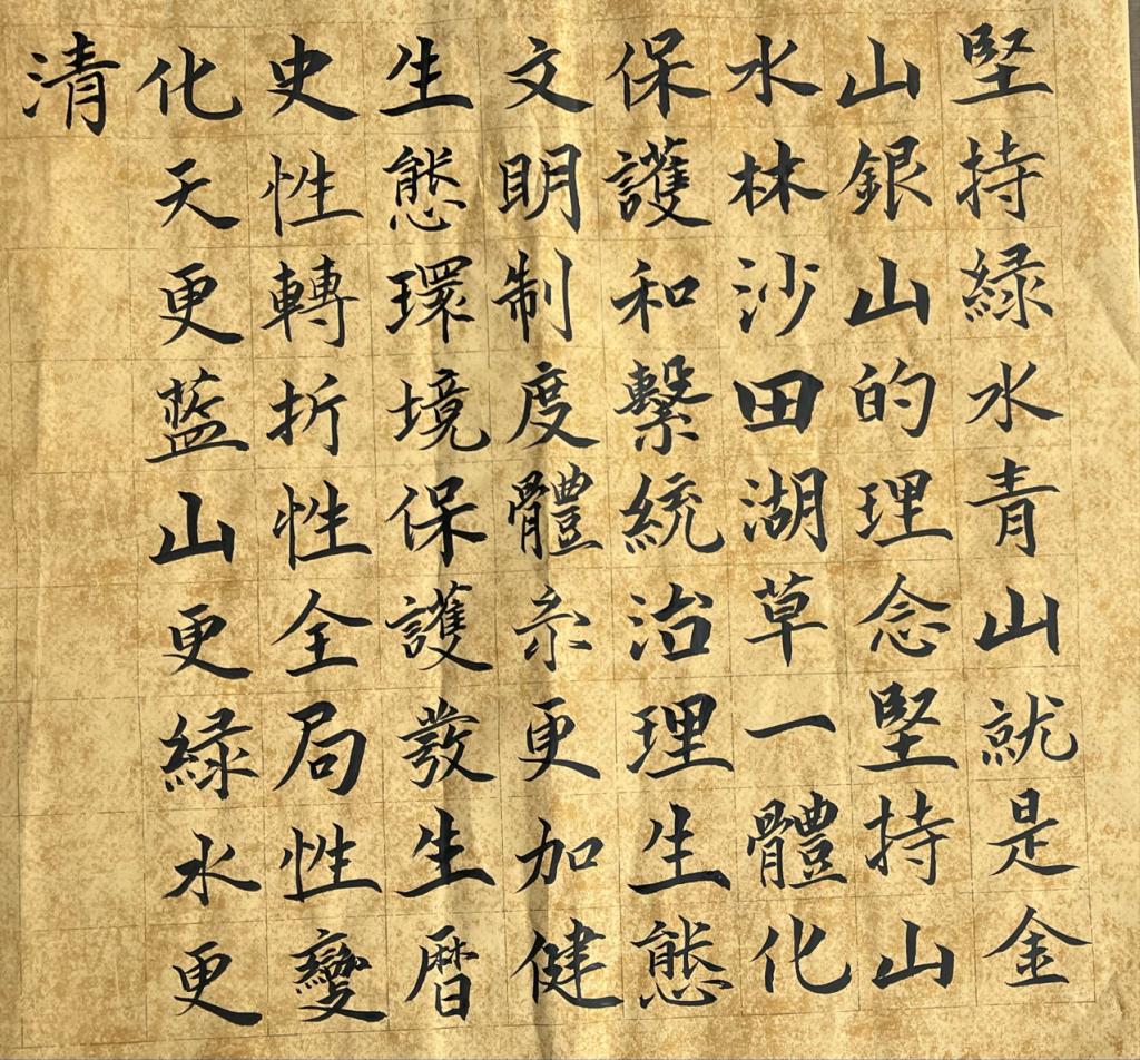 比赛中,同学们聚焦习近平生态文明理念金句,将“绿水青山”、“生态文明”和“生态环境保护”作为书写主题,泼墨挥毫,以可见可感的艺术方式宣传生态文明思想,表达出对建设文明、美丽生态家园的美好期许,充分展现出我院学生关注生态文明、积极参与到建设绿色环境的良好风貌。