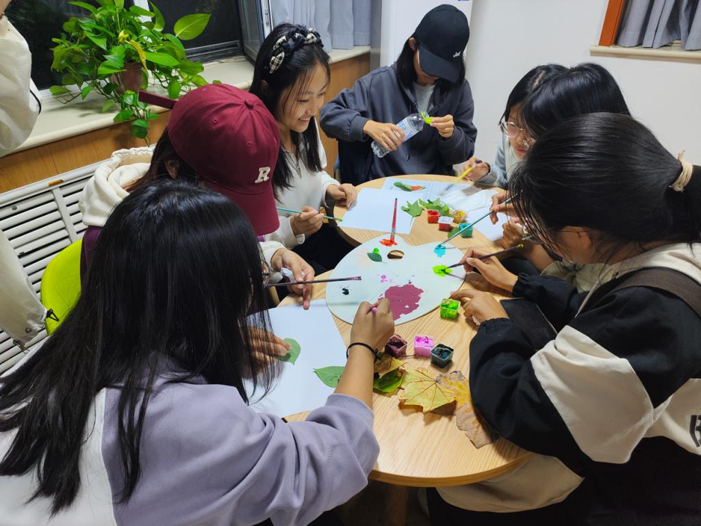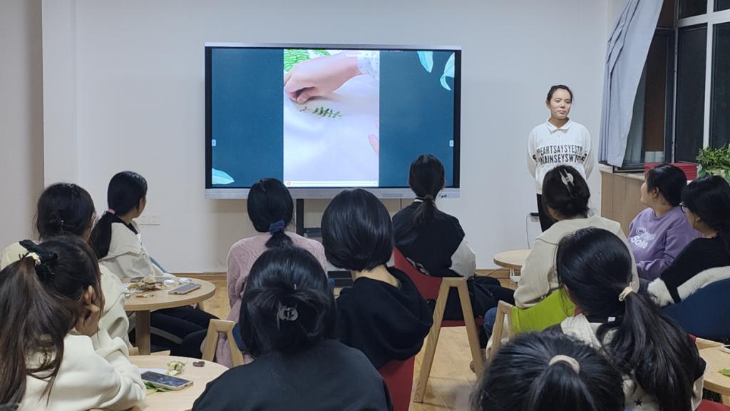 10月21日晚,欧美亚州国产日韩mv天天于事务发展中心二楼博学谷举办“撷一叶新绿,拓无尽芳华——植物创意拓印”活动。