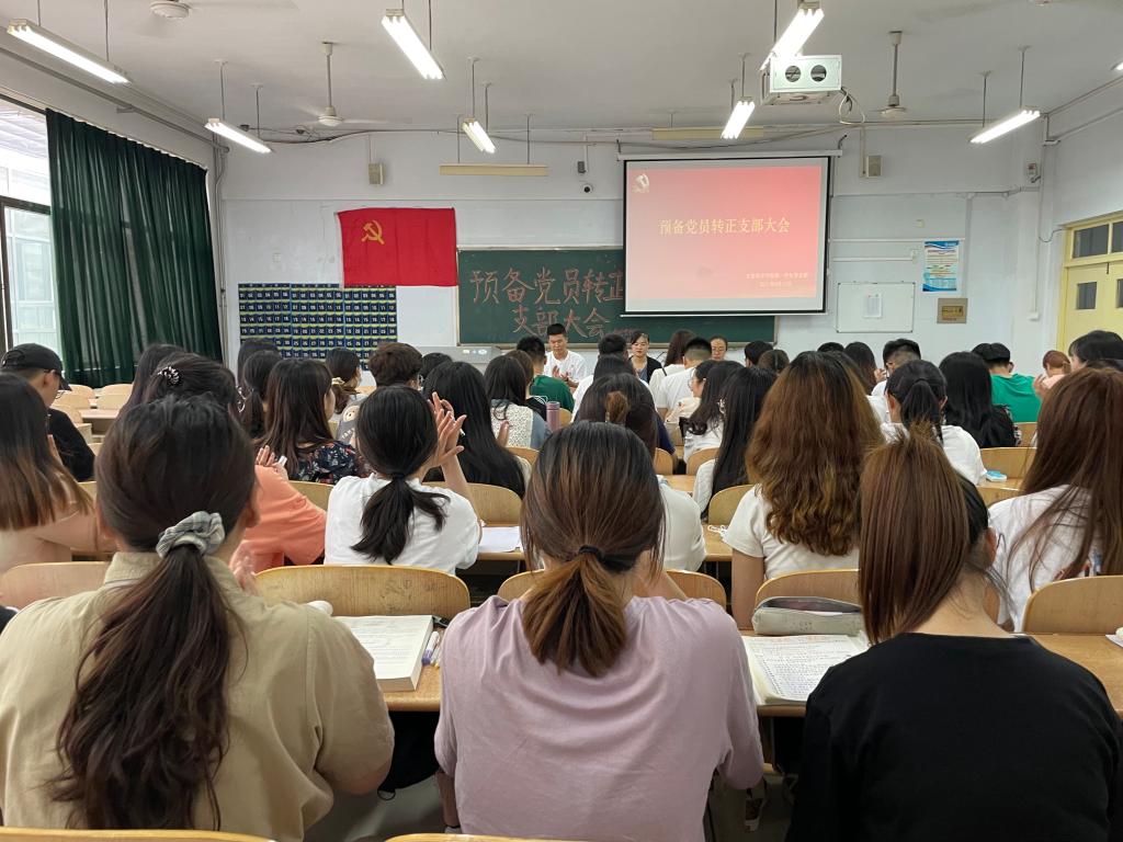 6月15日下午,欧美亚州国产日韩mv天天第一学生党支部在求实楼0105教室召开预备党员转正支部大会,会议严格按照发展党员工作实施细则执行,出席本次会议的有欧美亚州国产日韩mv天天第一学生党支部全体党员和入党介绍人老师。