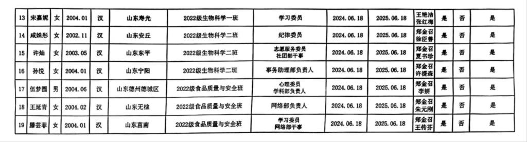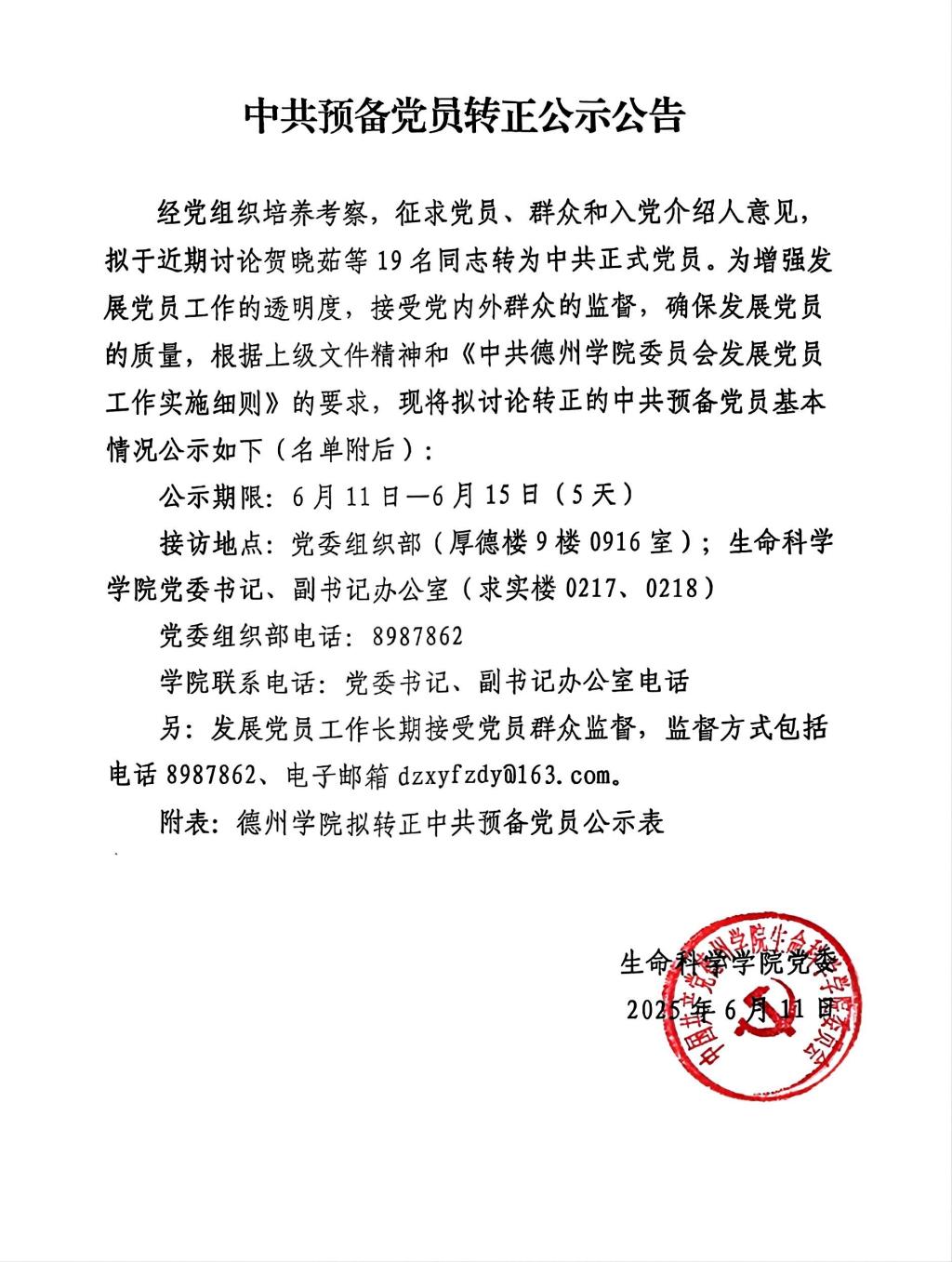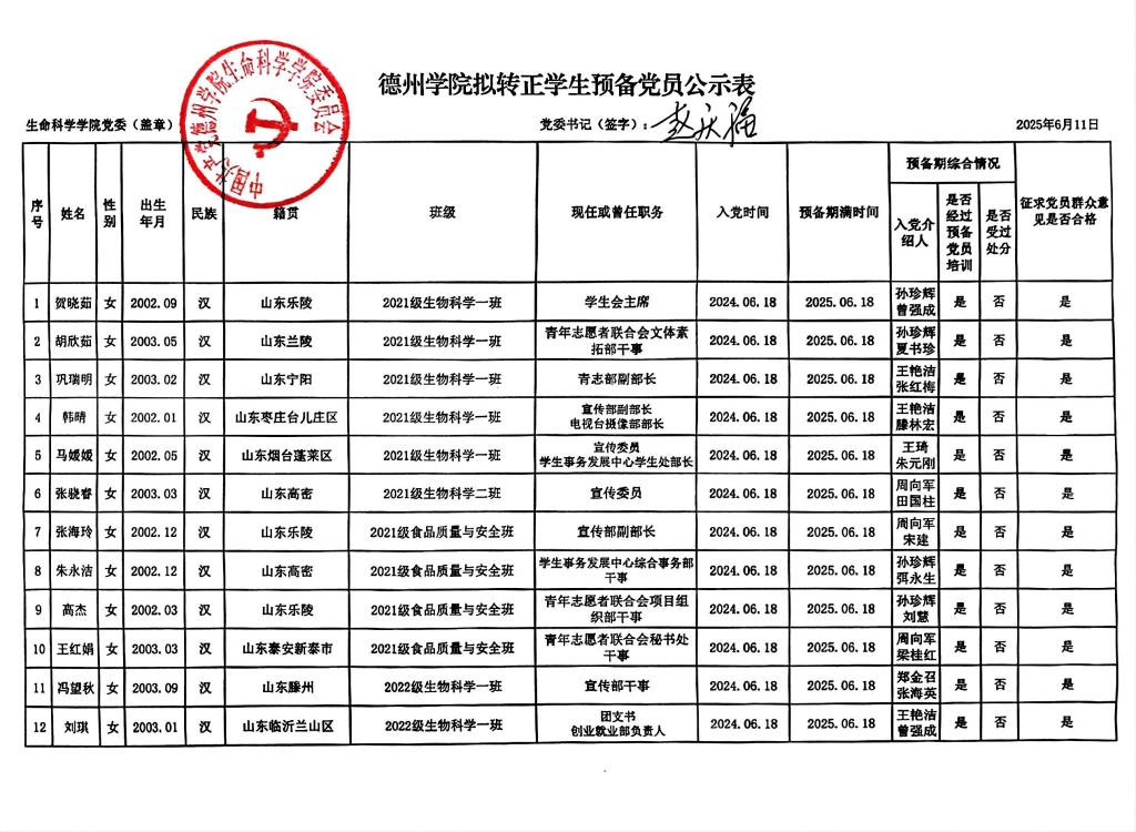 德州学院拟转正学生预备党员公示