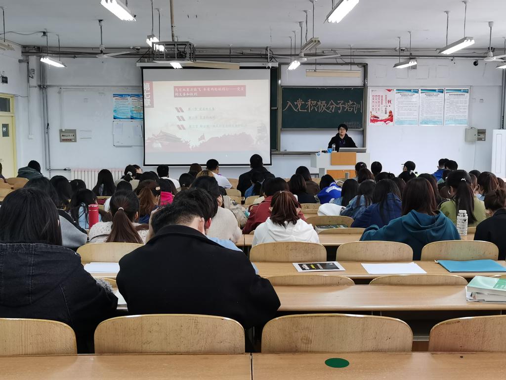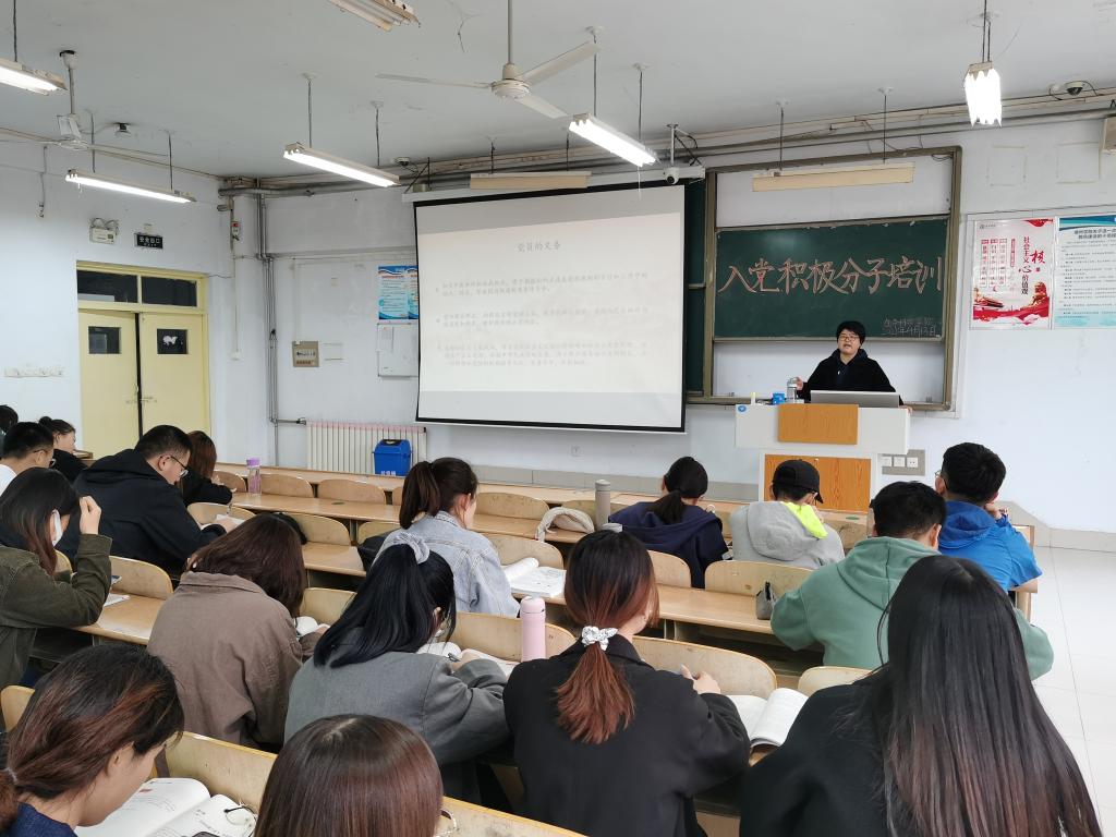 为提高入党积极分子的思想觉悟,明确党员的权利与义务,端正入党动机。欧美亚州国产日韩mv天天于2021年4月13日在求实楼0111教室开展“鸟有双翼方能飞,车有两轮始得行”入党积极分子培训讲座。本次课程由第二教工支部书记王传芬主持。