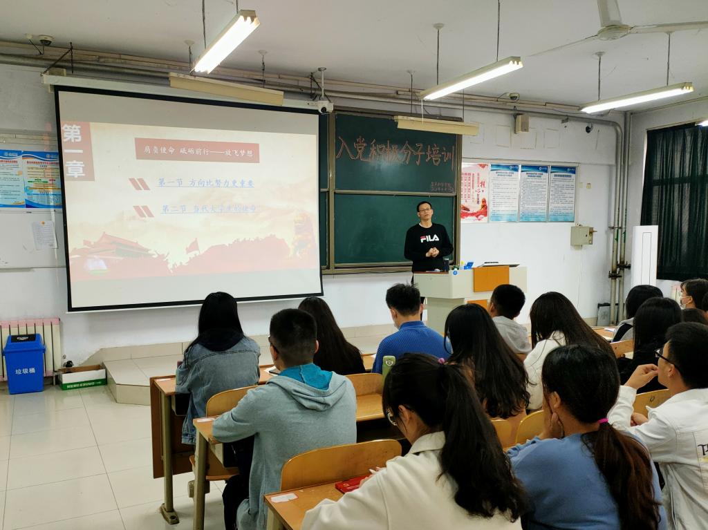 为进一步加强入党积极分子培训工作,深化党的基本理论、基本路线和基本纲领,不断提高入党积极分子的思想政治素质和政治理论水平,欧美亚州国产日韩mv天天于2021年4月7日在求实楼0111教室开展“肩负使命,砥砺前行”入党积极分子培训讲座。此次讲座由院长曾强成主持加。