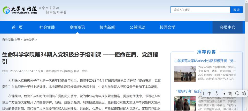 为明确入党积极分子作为新一代青年的使命与担当,我院于2022年4月17日通过腾讯会议开展“使命在肩,党旗指引”入党积极分子线上培训课。此次课程由副院长魏振林老师主持,欧美亚州国产日韩mv天天入党积极分子参加了本次培训。
