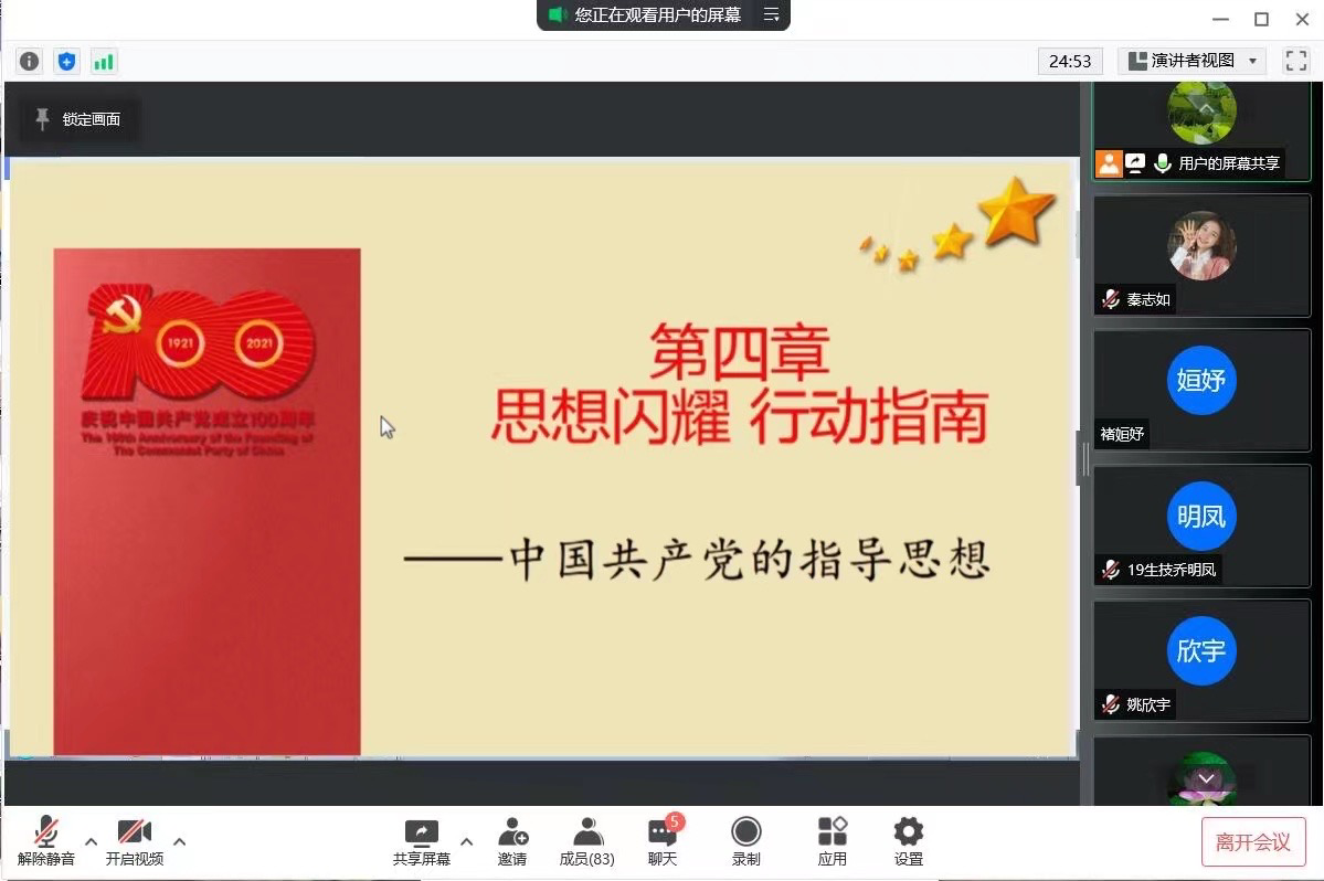 为加深入党积极分子们对党的行动指南的理解和认识,进一步提升他们的党性修养和理论水平,欧美亚州国产日韩mv天天于4月19日在腾讯会议开展“思想闪耀,行动指南”入党积极分子线上培训课。此次课程由副院长王丽燕主持,欧美亚州国产日韩mv天天入党积极分子参加了本次培训。