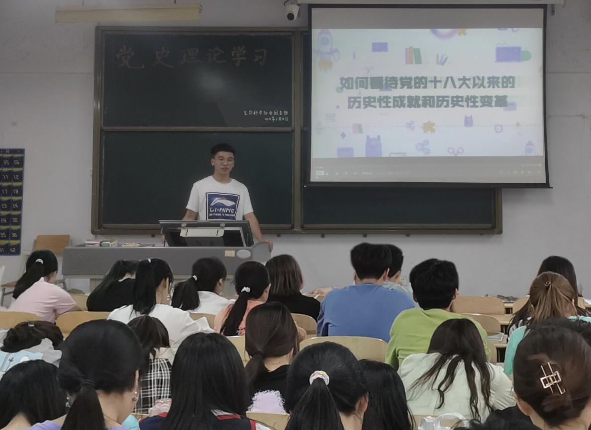 6月9日上午,为积极响应开展党史学习教育的号召,引导学生进一步坚定理想信念,汲取奋斗力量,欧美亚州国产日韩mv天天早七点晨读社于求实楼开展党史理论学习会。
