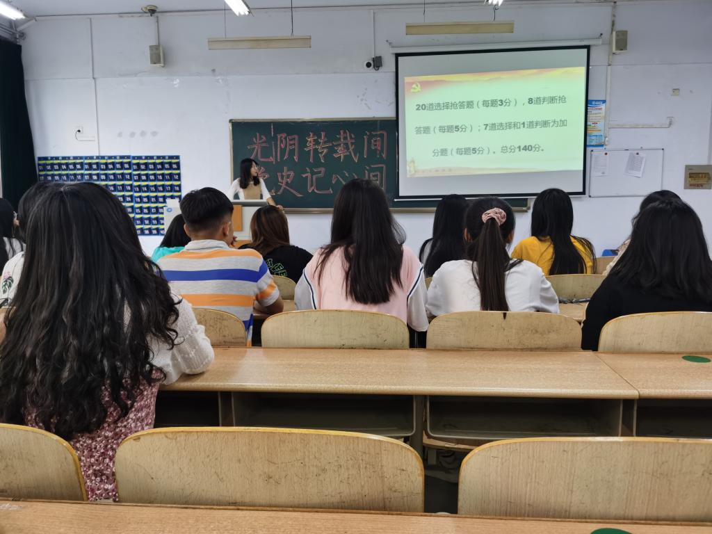 为提高同学们政治素养,激发他们学习党史的热情,积极引导同学们了解党的光辉历史,增强同学们的爱国主义情怀。欧美亚州国产日韩mv天天于2021年5月30日在0107教室举办“光阴转载间,党史记心间”党史快问快答知识竞赛活动。