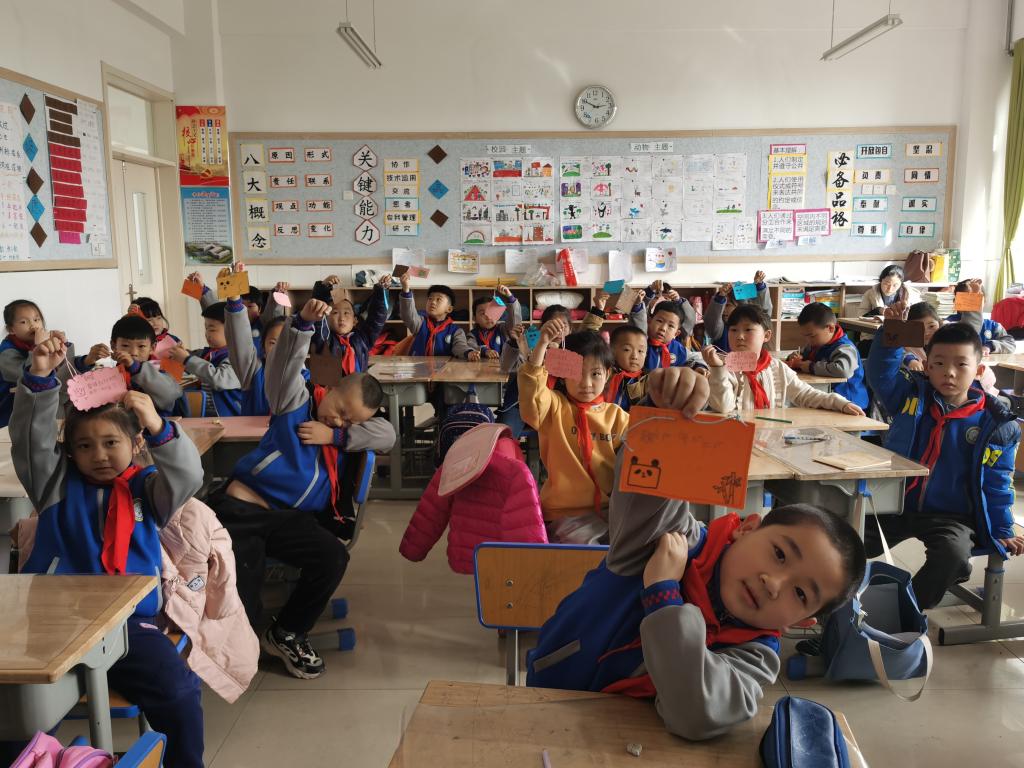 3月16日下午,志愿者们来到了德州学院附属小学北校区一年级七班的教室,当小朋友们知道志愿者老师将要为他们带来一堂别出心裁的课堂时,小朋友们用热烈的掌声迎接了志愿者们的到来。志愿者老师先为小朋友们讲述了雷锋的光荣事迹和雷锋的精神内涵等内容,随后志愿者老师带领小朋友们制作雷锋主题的书签,志愿者们将提前准备好的书签分发给每一个小朋友,小朋友们拿到书签后纷纷拿起笔来认真的书写自己想对雷锋说的话,每一位小朋友都一笔一画十分认真的书写着。最后由志愿者们帮助小朋友们给书签打孔并穿上绳子打好结。书签制作好后小朋友们纷纷向他们的小伙伴展示自己想对雷锋说的话。活动结束后,小朋友们举起手中的书签与志愿者们合影留念,他们不舍的告别声为本次爱心课堂画上了一个完整的句号。