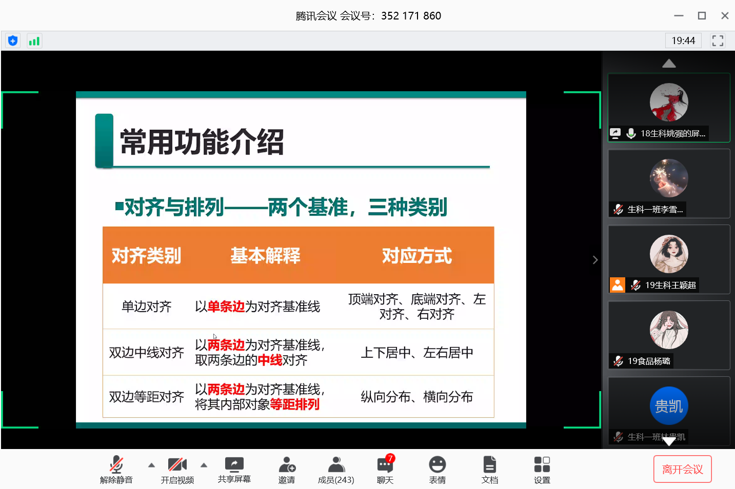 为了加强19级新生们对基本办公软件的了解和学习,提升新生们的办公能力和水平,从而高效地完成数据处理、课件制作、文件处理等各项工作,欧美亚州国产日韩mv天天网络部于2020年5月16日利用腾讯会议展开线上office办公软件培训活动。