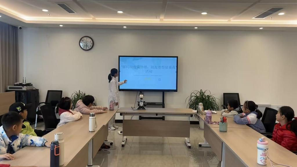 活动现场,志愿者以通俗易懂的语言,为小朋友们讲解细胞的基本定义、动植物细胞的核心结构差异,通过趣味问答、实物图示等方式,生动阐释细胞壁、叶绿体、液泡等结构的功能。在模型制作环节,志愿者一对一陪伴指导,带领小朋友们按照“选色塑形—定位摆放—细节雕琢—整体完善”的步骤,用黏土还原细胞形态。同时,志愿者们耐心解答小朋友们的疑问,引导他们还原细胞结构,小朋友们发挥创意,用多彩黏土打造出一件件形态生动的细胞模型,在动手实践中解锁生命科学的奥秘。