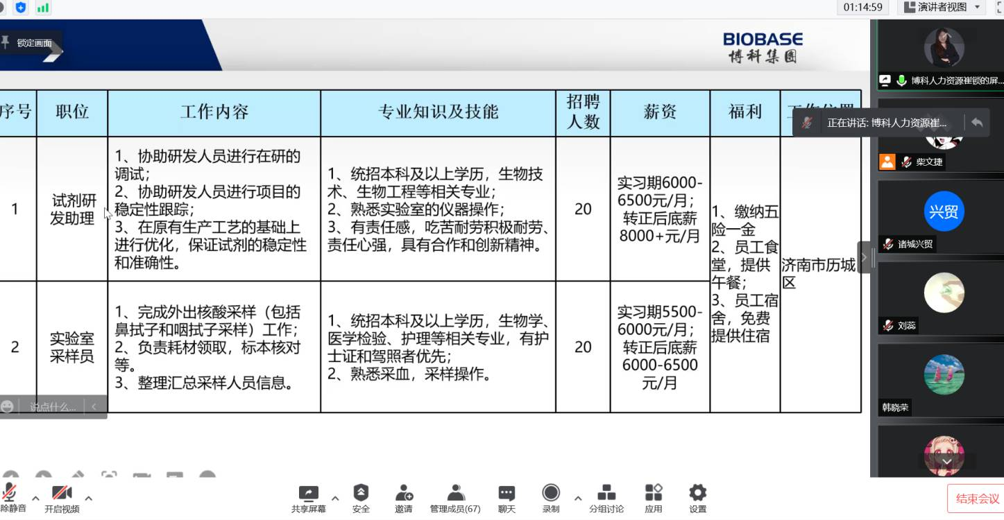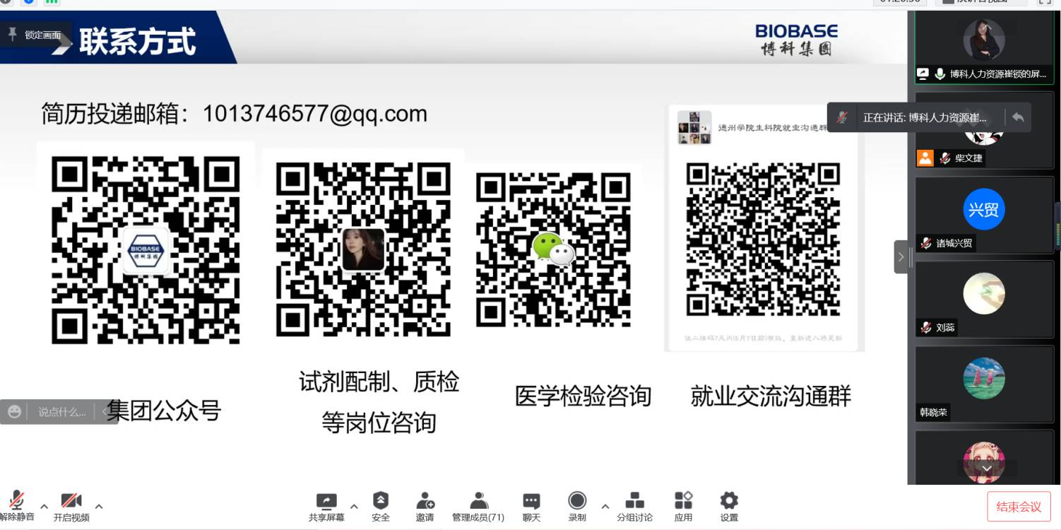 为贯彻落实全国普通高校毕业生的就业创业工作,做好新冠疫情防控下的高校毕业生校园招聘工作,给毕业生提供良好的就业服务,欧美亚州国产日韩mv天天学子于2022年4月29日在线上参加山东博科诊断科技公司宣讲会活动。