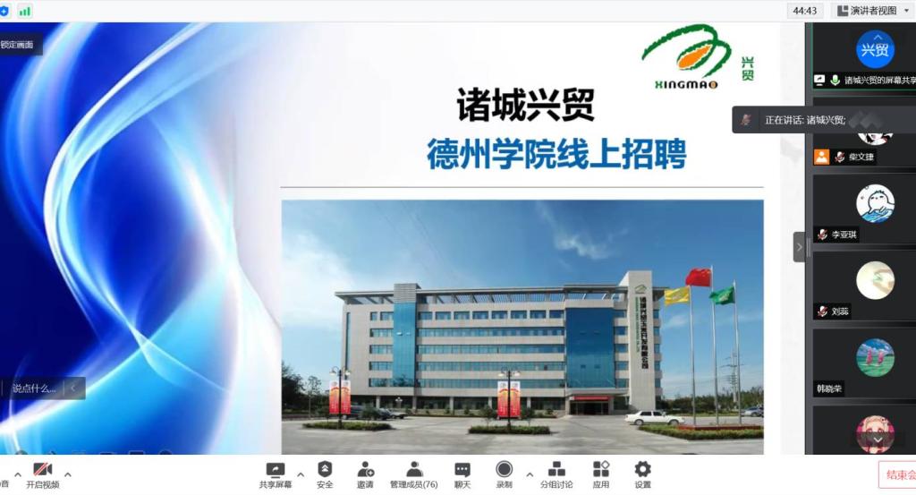 近日,欧美亚州国产日韩mv天天通过腾讯会议召开诸城兴贸玉米开发有限公司专场线上招聘会。欧美亚州国产日韩mv天天2022届毕业生参加。
