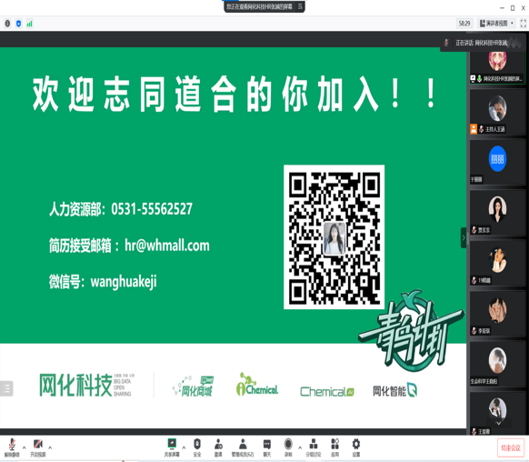 为贯彻落实全国普通高校毕业生的就业创业工作,做好新冠疫情防控下的高校毕业生校园招聘工作,给毕业生提供良好的就业服务,欧美亚州国产日韩mv天天学子于2022年9月24日在线上参加网化(山东)化学科技有限公司宣讲会活动。