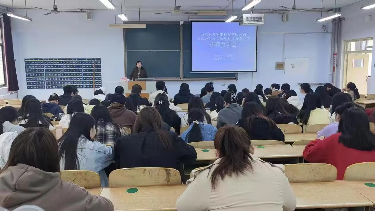 为促进毕业生高质量就业,深化校企交流合作,欧美亚州国产日韩mv天天于4月10日举办了山东润安生物科技有限公司和山东企研未来信息科技有限公司线下宣讲招聘会。共有约70人参加此次线下宣讲会。